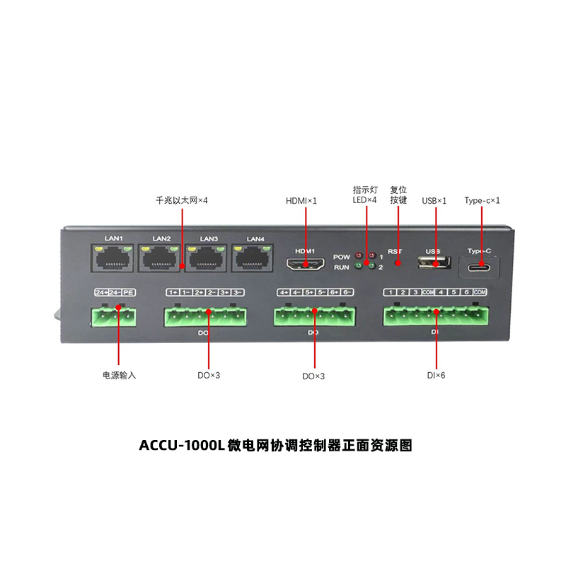 ACCU-1000L 微電網協調控制器是一種應用于微電網、分布式發電、儲能等領域的模塊化智能協調控制器。裝置滿足系統滿足光伏系統、風力發電、儲能系統以及充電樁等設備的接入,通過對微電網系統進行全天候數據采集分析,監視光伏、風能、儲能系統、充電樁運行狀態及健康狀況